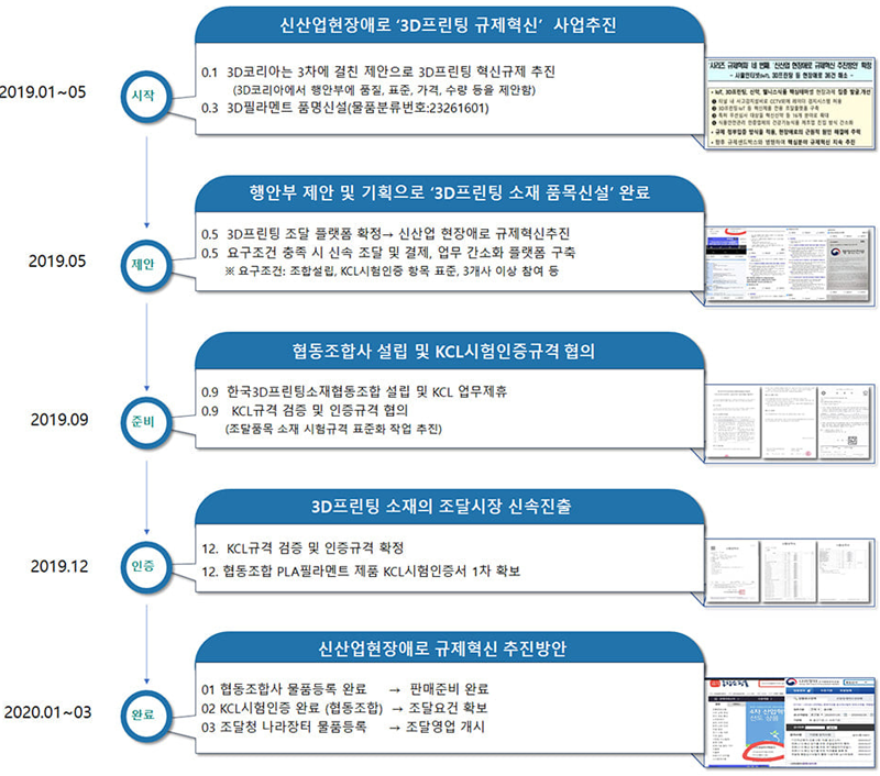 - 조달 품목 등재 요건 및 품질 기준 마련 → 표준화